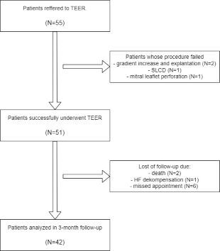 mitralną, poddanych TEER. Badanie zostało zaprojektowane jako prospektywne, jednoośrodkowe badanie obserwacyjne i objęło dane 42 kolejnych pacjentów, u których wykonano TEER. Głównym punktem końcowym była zmiana jakości życia po 3 miesiącach obserwacji.